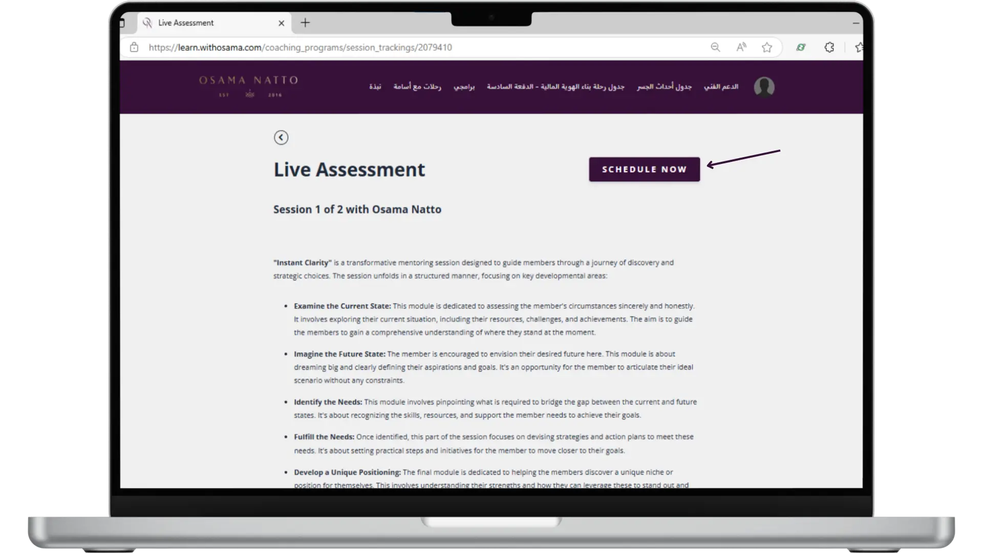 For now, Kindly click on schedule now next to the first session "Live Assessment".